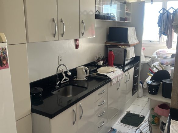 Apartamento com 3 dormitórios, sacada, elevador, vaga dupla de garagem, salão de festas, monitoramento por câmeras e móveis fixos na cozinha e banheiro!